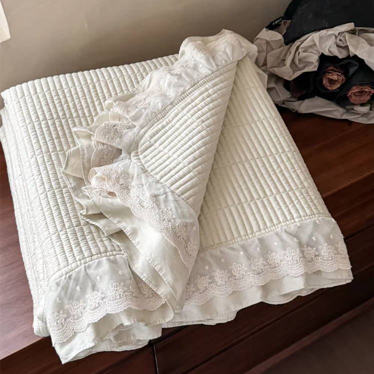 レース生地のプリントキルト